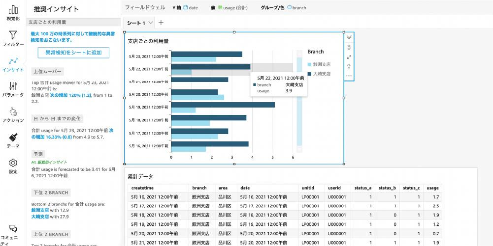 図.3:Amazon QuickSightによるデータ分析
