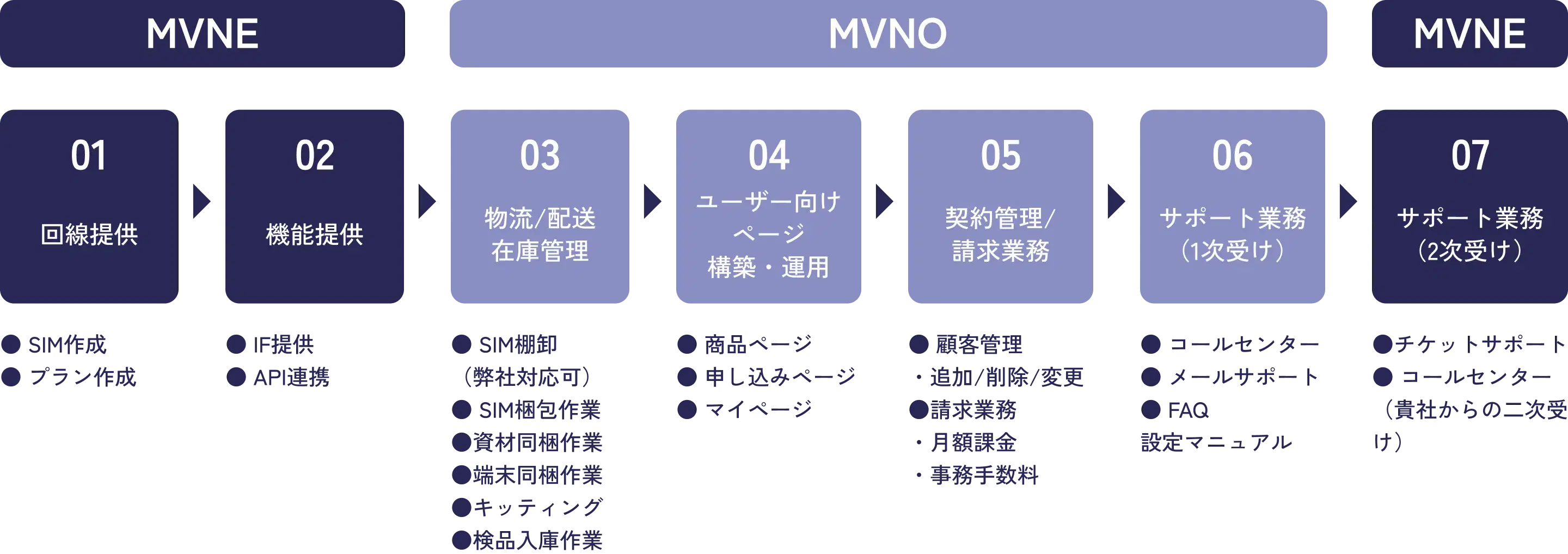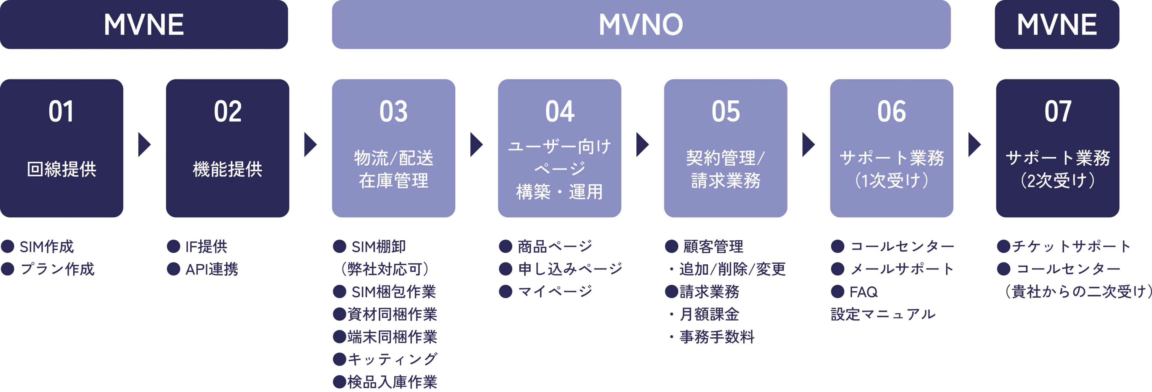 法人従業員向けのSIMなど、通話をメインとした法人事業者向けのMVNO事業のサポートも実績がございます